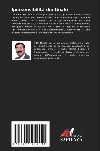 L'ipersensibilità dentinale è un problema clinico significativo. È definita come ¿dolore derivante dalla dentina esposta, tipicamente in risposta a stimoli termici, chimici, tattili o osmotici¿. La sua gestione richiede una buona comprensione della sua complessità e delle varie modalità di trattamento. Per questo motivo, in questo libro si cerca di passare in rassegna l'ipersensibilità dentinale e la sua eziopatogenesi, la prevalenza, le varie modalità di trattamento e le tendenze recenti nel trattamento.
