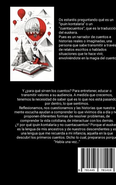 Os estaréis preguntando qué es un "ipuin kontalaria" o un "cuentacuentos", que es la traducción del euskera. Pues es un narrador de historias reales o imaginadas, una persona que sabe transmitir a través de relatos escritos o hablados situaciones que te hace vivir, envolviéndote en la magia del cuento. Y ¿para qué sirven los cuentos? Para entretener, educar o transmitir valores a su audiencia. A medida que crecemos, tenemos la necesidad de saber qué es lo que nos está pasando por dentro, lo que sentimos. Reflexionamos, nos cuestionamos y las historias que nuestra mente escucha ayudan a comprender lo que vivimos día a día y nos proponen diferentes formas de resolver problemas, de comprender la vida cotidiana, de interactuar con los demás. ¿Y por qué ipuin kontalaria y no cuentacuentos? Porque el euskera es la lengua de mis ancestros y de nuestros descendientes y es una lengua que me recuerda a mi infancia, aquella en la que descubrí los primeros cuentos. Dicho lo cual, prepararos porque "Había una vez..."
