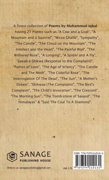 Sir Muhammad Iqbal Kt (Urdu: ¿¿¿¿ ¿¿¿¿¿; 9 November 1877 - 21 April 1938), was a South Asian Muslim writer, philosopher, and politician, whose poetry in the Urdu language is considered among the greatest of the twentieth century, and whose vision of a cultural and political ideal for the Muslims of British-ruled India was to animate the impulse for Pakistan. He is commonly referred to by the honorific Allama (from Persian: ¿¿¿¿¿, romanized: ¿all¿ma, lit.¿'very knowing, most learned').Born and raised in Sialkot, Punjab in an ethnic Kashmiri Muslim family, Iqbal completed his B.A. and M.A. at the Government College Lahore. He taught Arabic at the Oriental College, Lahore from 1899 until 1903. During this time, he wrote prolifically. Among the Urdu poems from this time that remain popular are Parinde ki faryad (A bird's prayer), an early meditation on animal rights, and Tarana-e-Hindi (The Song of India) a patriotic poem-both poems composed for children. In 1905, he left for further studies in Europe, first to England, where he completed a second B.A. at Trinity College, Cambridge and was subsequently called to the bar at Lincoln's Inn, and then to Germany, where he received a Ph.D. in philosophy at the University of Munich. After returning to Lahore in 1908, he established a law practice but concentrated on writing scholarly works on politics, economics, history, philosophy, and religion. He is best known for his poetic works, including Asrar-e-Khudi - after whose publication he was awarded a knighthood, Rumuz-e-Bekhudi, and the Bang-e-Dara. In Iran, where he is known as Iqb¿l-e L¿hor¿ (Iqbal of Lahore), he is highly regarded for his Persian works.Iqbal was a strong proponent of the political and spiritual revival of Islamic civilisation across the world, but in particular in South Asia; a series of lectures he delivered to this effect were published as The Reconstruction of Religious Thought in Islam. Iqbal was elected to the Punjab Legislative Council in 1927 and held a number of positions in the All India Muslim League. In his 1930 presidential address at the League's annual meeting in Allahabad, he formulated a political framework for Muslims in British-ruled India. Iqbal died in 1938. After the creation of Pakistan in 1947, he was named the national poet there. He is also known as the "Hakeem-ul-Ummat" ("The Sage of the Ummah") and the "Mufakkir-e-Pakistan" ("The Thinker of Pakistan"). The anniversary of his birth (Yom-e Wel¿dat-e Müammad Iqb¿l), 9 November, used to be a public holiday in Pakistan until 2018. Abul Hasan Ali Hasani Nadwi wrote Glory of Iqbal to introduce him to the Arab world.