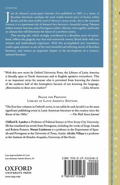 Jose de Alencar's prose-poem Iracema, first published in 1865, is a classic of Brazilian literature--perhaps the most widely-known piece of fiction within Brazil, and the most widely-read of Alencar;s many works. Set in the sixteenth century, it is an extremely romantic portrayal of a doomed live between a Portuguese soldier and an Indian maiden. Iracema reflects the gingerly way that mid-nineteenth century Brazil dealt with race mixture and multicultural experience. Precisely because of its nineteenth-century romanticism, Iracema strongly contributed to a Brazilian sense of nationhood--contemporary Brazilian writers and literary critics still cite it as a foundation for their own work.
