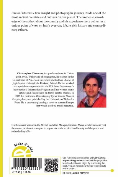 Iran in Pictures is a true insight and photographic journey inside one of the most ancient countries and cultures on our planet. The immense knowledge of the author about the country and his experience there deliver us a unique point of view on Iran's everyday life, its rich history and extraordinary culture. Christopher Thornton is a professor born in Chicago in 1956. Writer and photographer, he teaches in the Department of American Literature and Culture Studies at Jagiellonian University in Krakow, Poland. He has worked as a special correspondent for the U.S. State Department's International Information Program and has written many articles and essays based on travel-related themes. In 2019 his first book, Descendants of Cyrus: Travels Through Everyday Iran, was published by the University of Nebraska Press. He is currently planning a book on eastern Europe that would also be a travel narrative. On the cover: Visitor in the Skeikh Lotfallah Mosque, Esfahan. Many secular Iranians visit the country's historic mosques to appreciate their architectural beauty and the peace and solitude they offer.