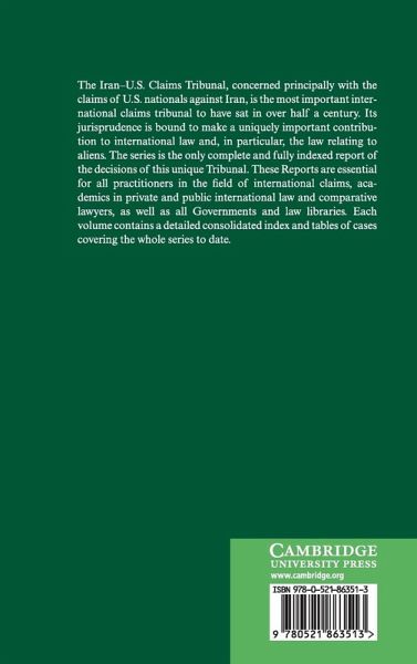 The Iran-U.S. Claims Tribunal, concerned principally with the claims of U.S. nationals against Iran, is the most important international claims tribunal to have sat in over half a century. Its jurisprudence is bound to make a uniquely important contribution to international law and, in particular, the law relating to aliens. The series is the only complete and fully indexed report of the decisions of this unique Tribunal. These Reports are essential for all practitioners in the field of international claims, academics in private and public international law and comparative lawyers as well as all Governments and law libraries. Each volume contains a detailed consolidated index and tables of cases covering the whole series to date.