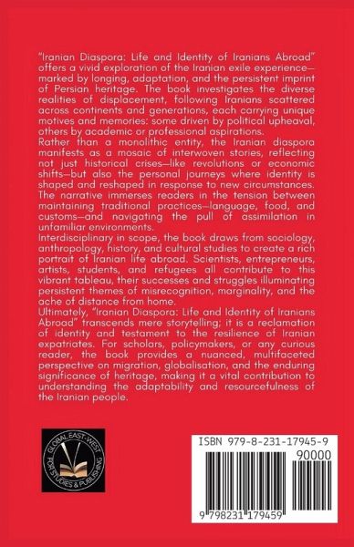 "Iranian Diaspora: Life and Identity of Iranians Abroad" offers a vivid exploration of the Iranian exile experience-marked by longing, adaptation, and the persistent imprint of Persian heritage. The book investigates the diverse realities of displacement, following Iranians scattered across continents and generations, each carrying unique motives and memories: some driven by political upheaval, others by academic or professional aspirations. Rather than a monolithic entity, the Iranian diaspora manifests as a mosaic of interwoven stories, reflecting not just historical crises-like revolutions or economic shifts-but also the personal journeys where identity is shaped and reshaped in response to new circumstances. The narrative immerses readers in the tension between maintaining traditional practices-language, food, and customs-and navigating the pull of assimilation in unfamiliar environments. Communities, family ties, and digital networks serve as vital refuges, helping preserve collective memory and nurture evolving identities. The book illuminates the balancing act between cultural retention and adaptation, exploring the pain of nostalgia and the constant negotiation of selfhood amid pressures from both ancestral legacy and new surroundings. It delves into questions about belonging, difference, and the forging of new communal myths, all shaped by the unpredictability of diaspora life. A major focus is how Iranians abroad interact with their host societies and with Iran itself. Their engagement evolves-ranging from activism and advocacy to moments of ambivalence-as they respond to shifting perceptions of their homeland, coloured by emotions such as affection, alienation, and hope. The complexities of this relationship are further enriched by transnational connections, remittances, and the ongoing impact of post-revolutionary history. At the same time, external challenges-like prejudice, political suspicion, and issues of representation-complicate these experiences. Interdisciplinary in scope, the book draws from sociology, anthropology, history, and cultural studies to create a rich portrait of Iranian life abroad. Scientists, entrepreneurs, artists, students, and refugees all contribute to this vibrant tableau, their successes and struggles illuminating persistent themes of misrecognition, marginality, and the ache of distance from home. Ultimately, "Iranian Diaspora: Life and Identity of Iranians Abroad" transcends mere storytelling; it is a reclamation of identity and testament to the resilience of Iranian expatriates. For scholars, policymakers, or any curious reader, the book provides a nuanced, multifaceted perspective on migration, globalisation, and the enduring significance of heritage, making it a vital contribution to understanding the adaptability and resourcefulness of the Iranian people.
