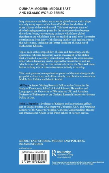 Iraq, democracy and Islam are powerful global forces which shape not only many aspects of the lives of Muslims, but the lives of other citizens of the world as well. This book explores many of the challenging questions posed by the interconnections between these three forces, concentrating on issues which have global significance and which have been less studied up until now. It contains contributions from many of the leading thinkers and academics from this subject area, including the former President of Iran, Seyyed Mohammad Khatami. Topics such as the compatibility of Islam and democracy, and the question of whether democracy can be encouraged in the Middle East are looked at carefully. Contributors evaluate the circumstances under which democracy can be imposed by outside force, and asks what forces are driving the confrontation between the West and Islam, before looking at how this confrontation is likely to develop. This book presents a comprehensive picture of dynamic change in the geopolitics of our time, and offers a timely contribution to research on Middle East Politics and Islamic Studies.
