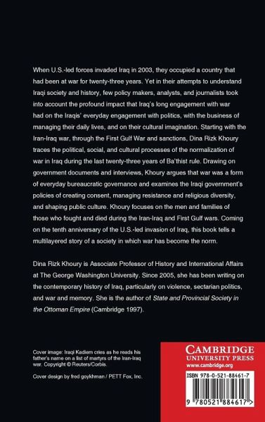 When US-led forces invaded Iraq in 2003, they occupied a country that had been at war for 23 years. Yet in their attempts to understand Iraqi society and history, few policy makers, analysts and journalists took into account the profound impact that Iraq's long engagement with war had on the Iraqis' everyday engagement with politics, the business of managing their daily lives, and their cultural imagination. Drawing on government documents and interviews, Dina Rizk Khoury traces the political, social and cultural processes of the normalization of war in Iraq during the last twenty-three years of Ba'thist rule. Khoury argues that war was a form of everyday bureaucratic governance and examines the Iraqi government's policies of creating consent, managing resistance and religious diversity, and shaping public culture. Coming on the tenth anniversary of the US-led invasion of Iraq, this book tells a multilayered story of a society in which war has become the norm.