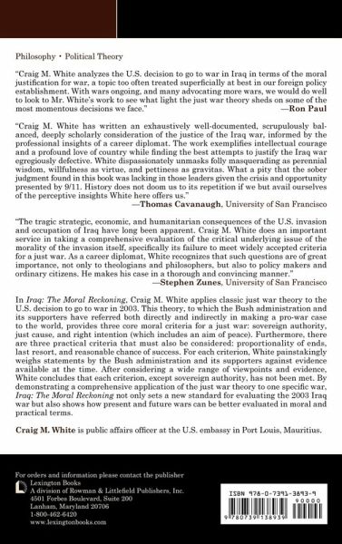 Iraq: The Moral Reckoning is an intensive application of the six classic just war theory criteria to the 2003 Iraq war decision, weighing information available at the time from a wide range of sources and concluding that the war met just one of the six, whereas a just war should meet all. It supplements the criteria with widely used ethical principles and thoroughly refutes neoconservative arguments that the war met the criteria.