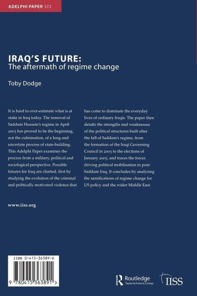 Iraq's Future investigates the difficult and costly regime change in Baghdad, taking into account US troops, the new Iraqi government and the future of state-building. The book describes what is involved in building a new government from scratch.