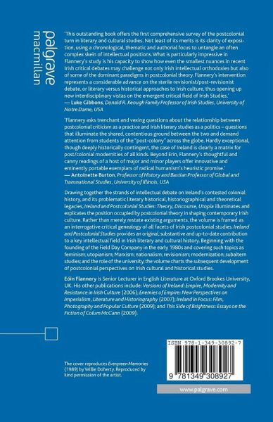 'This outstanding book offers the first comprehensive survey of the postcolonial turn in literary and cultural studies. Not least of its merits is its clarity of exposition, using a chronological, thematic and authorial focus to untangle an often complex skein of intellectual positions. What is particularly impressive in Flannery's study is his capacity to show how even the smallest nuances in recent Irish critical debates may challenge not only Irish intellectual orthodoxies but also of some of the dominant paradigms in postcolonial theory. Flannery's intervention represents a considerable advance on the sterile revisionist/post-revisionist debate, or literary versus historical approaches to Irish culture, thus opening up new interdisciplinary vistas on the emergent critical field of Irish Studies.' - Luke Gibbons, Donald R. Keough Family Professor of Irish Studies, University of Notre Dame, USA
