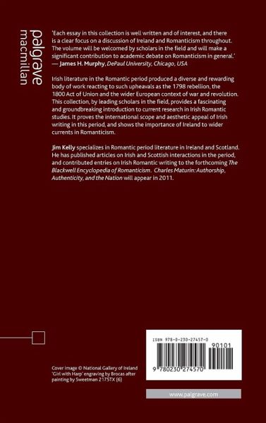 Introduction; J.Kelly Part I: Scenes: The Country and the City Cín Lae Amhlaoibh: Modernization and the Irish language; P.Ó Drisceoil Jemmy O'Brien: Informer to Gothic Villain; T.Webb Part II: Influences from Abroad Spanish Literature and Irish Romanticism, 1800-1850; A.MacCarthy Robert Burns and Hibernia; S.Dornan Part III: The Irish Writer Abroad 'Transatlantic Tom': Thomas Moore in North America; J.Moore A United Irishman in the Alps: William MacNevin's A Ramble Through Swisserland (1803); P.Vincent Lady Morgan (Sydney Owenson) and the Politics of Romanticism; S.Egenolf Part IV: Irish Poetry in the Romantic Period Drawing Breath: The Origin of Moore's Irish Melodies; A.Paterson Malvina's Daughters: Irish Women Poets and the Sign of the Bard; L.Davis Part V: Fictions of the Romantic Period The Irish Booktrade in the Romantic Period; C.Benson 'Gothic' and 'National'? Challenging the Formal Distinctions of Irish Romantic Fiction; C.Morin Escaping from Barrett's Moon: Recreating the Irish Literary Landscape in the Romantic Period; J.Shanahan Afterword: Placing 'Irish' and 'Romanticism' in the Same Frame: Prospects; S.Behrendt Index