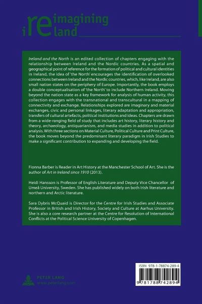 Ireland and the North is an edited collection of chapters engaging with the relationship between Ireland and the Nordic countries. As a spatial and geographical point of reference for the formation of political and cultural identities in Ireland, the idea of «the North» encourages the identification of overlooked connections between Ireland and the Nordic countries, which, like Ireland, are also small nation states on the periphery of Europe. Importantly, the book employs a double conceptualisation of «the North» to include Northern Ireland. Moving beyond the nation state as a key framework for analysis of human activity, this collection engages with the transnational and transcultural in a mapping of connectivity and exchange. Relationships explored are imaginary and material exchanges, civic and personal linkages, literary adaptation and appropriation, transfers of cultural artefacts, political institutions and ideas. Chapters are drawn from a wide-ranging field of study that includes art history, literary history and theory, archaeology, antiquarianism, and media studies in addition to political analysis. With three sections on Material Culture, Political Culture and Print Culture, the book moves beyond the predominant literary paradigm in Irish Studies to make a significant contribution to expanding and developing the field.