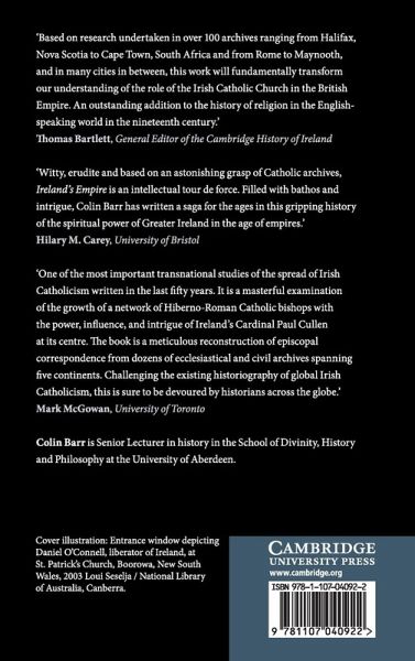 Colin Barr is Senior Lecturer in the School of Divinity, History and Philosophy at the University of Aberdeen. He is the author of several books on Irish history, including Paul Cullen, John Henry Newman, and the Catholic University of Ireland, 1845-1865 (2003), The European Culture Wars in Ireland: The Callan Schools Affair 1868-81 (2010) and is co-editor of Nation/Nazione: Irish Nationalism and the Italian Risorgimento (2013), with Michele Finelli and Anne O'Connor, and Religion and Greater Ireland: Christianity and Irish Global Networks, 1750-1950 (2015), with Hilary M. Carey.