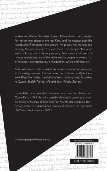 In this collection, actor and seanchaí (traditional storyteller) Éamon Kelly's finest stories are collected for the first time: stories of the real Kerry and the magical past of the Gobán Saor, the heartbreak of emigration, the stations, the priests, the courting and dancing, the war between the sexes. Kelly mines a rich seam of humour and sadness out of resilience of a people rich in hospitality and generosity, imagination, culture and tradition.