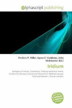 Please note that the content of this book primarily consists of articles available from Wikipedia or other free sources online. Iridium. Isotopes of iridium, Cretaceous Tertiary extinction event, Centers for Disease Control and Prevention, Platinum group, Chemical element, Atomic number