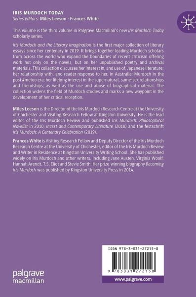 Iris Murdoch and the Literary Imagination is the first major collection of literary essays since her centenary in 2019. It brings together leading Murdoch scholars from across the world who expand the boundaries of recent criticism offering work not only on the novels, but on her unpublished poetry and archival materials. This collection discusses her interest in, and use of, Japanese literature; her relationship with, and reader-response to her, in Australia; Murdoch in the post #metoo era; her lifelong interest in the supernatural, same-sex relationships and friendships; as well as the use and abuse of biographical material. The collection widens the field of Murdoch studies and marks a new waypoint in the development of her critical reception.