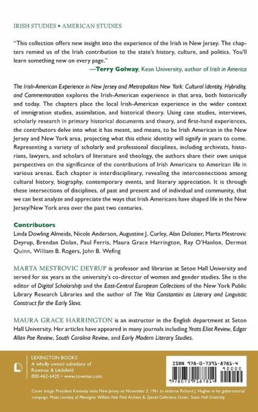 Foreword: Maura Grace Harrington and Marta M. Deyrup Introduction: Dermot Quinn Part I: Irish Americans in the Newark Area Chapter 1: The Irish in the Roman Catholic Archdiocese of Newark-Augustine J. Curley, O.S.B. Chapter 2: "Keeping the Tradition Alive"-William B. Rogers and Nicole Anderson Chapter 3: Perspectives on the Easter Rising-Maura Grace Harrington Part II: Arriving and Thriving Chapter 4: Irish Immigration to the United States in the 20th Century-Linda Dowling Almeida Chapter 5: American Irish in Service to Community & Country: A Vocational & New Jersey Perspective-Alan Delozier Chapter 6: An Irish-American Politician: Governor Richard Hughes-John B. Wefing Chapter 7: The Writing Irish-Ray O'Hanlon Part III: The Greater New York/New Jersey Region Chapter 8: Music in the Mountains: The Irish Catskills and Traditional Music-Brendan Dolan Chapter 9: "With Pick and Shovel": Commemorating the Workers Who Died Building the Delaware and Raritan Canal, 1830-1834-Paul Ferris