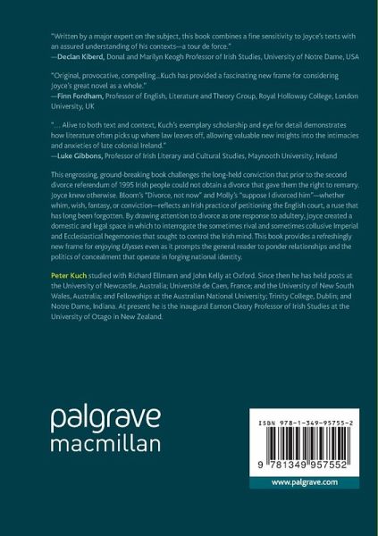 This engrossing, ground-breaking book challenges the long-held conviction that prior to the second divorce referendum of 1995 Irish people could not obtain a divorce that gave them the right to remarry. Joyce knew otherwise, as Peter Kuch reveals-obtaining a decree absolute in Edwardian Ireland, rather than separation from bed and board, was possible. Bloom's "Divorce, not now" and Molly's "suppose I divorced him"-whether whim, wish, fantasy, or conviction-reflects an Irish practice of petitioning the English court, a ruse that, even though it was known to lawyers, judges, and politicians at the time, has long been forgotten. By drawing attention to divorce as one response to adultery, Joyce created a domestic and legal space in which to interrogate the sometimes rival and sometimes collusive Imperial and Ecclesiastical hegemonies that sought to control the Irish mind. This compelling, original book provides a refreshingly new frame for enjoying Ulysses even as it prompts thegeneral reader to think about relationships and about the politics of concealment that operate in forging national identity