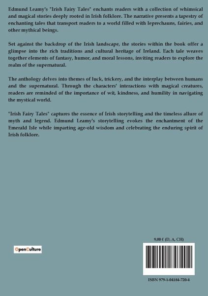 Edmund Leamy's "Irish Fairy Tales" enchants readers with a collection of whimsical and magical stories deeply rooted in Irish folklore. The narrative presents a tapestry of enchanting tales that transport readers to a world filled with leprechauns, fairies, and other mythical beings. Set against the backdrop of the Irish landscape, the stories within the book offer a glimpse into the rich traditions and cultural heritage of Ireland. Each tale weaves together elements of fantasy, humor, and moral lessons, inviting readers to explore the realm of the supernatural. The anthology delves into themes of luck, trickery, and the interplay between humans and the supernatural. Through the characters' interactions with magical creatures, readers are reminded of the importance of wit, kindness, and humility in navigating the mystical world. "Irish Fairy Tales" captures the essence of Irish storytelling and the timeless allure of myth and legend. Edmund Leamy's storytelling evokes the enchantment of the Emerald Isle while imparting age-old wisdom and celebrating the enduring spirit of Irish folklore.