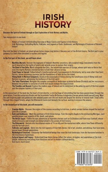 Discover the Spirit of Ireland through an Epic Exploration of Irish History and Myths. Two manuscripts in one book: History of Ireland: An Enthralling Overview of Major Events and Figures in Irish History Irish Mythology: Enthralling Myths, Folktales, and Legends of Gods, Goddesses, and Mythological Creatures of Ancient Ireland In the first part of this book, you will learn about: Neolithic Marvels: Uncover the ingenuity of Ireland's Neolithic ancestors, who sculpted mega-monuments from the earth long before the myths of giants and wizards arose to explain their origins. The Dawn of the Celts: March alongside the Celts, the indomitable warriors of Europe, whose spirit was so fierce that even the mighty Romans erected barriers to hold their advance at bay. From Pagan to Sacred: Follow Ireland's transformative path from paganism to Christianity, led by none other than Saint Patrick, whose missionary journeys laid the foundations of faith across the island. In the second part of this book, you will encounter: Creation Myths - Discover the origins of the cosmos according to Irish lore, in which ancient deities shaped the land and gave life to people. Gods and Goddesses - Meet the pantheon of Irish divine beings, from the mighty Dagda to the enchanting Mórrígan, each wielding power over aspects of life, death, and nature. The Heroic Sagas - Follow the epic adventures of legendary heroes such as Cú Chulainn and Fionn mac Cumhaill, whose deeds of bravery and strength are immortalized in the annals of Irish history. And much, much more!