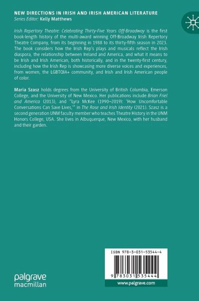 Chapter 1: Introduction: The Irish Repertory Theatre Company: Celebrating Thirty-Five Years Off-Broadway.- Chapter 2: Charlotte Moore and Ciarán O'Reilly: "Smitten With Magic of the Theatre".- Chapter 3: Opening Season: 1988-1989 and Season 2: 1989-1990: The Plough and the Stars, Whistle in the Dark, Yeats! A Celebration, and Philadelphia, Here I Come!.- Chapter 4: Grandchild of Kings: Harold Prince Takes the Helm, and Highlights From Seasons 3-7: 1990-1995.- Chapter 5: Renting a Home in Chelsea, and Highlights from Season 8: 1995-1996.- Chapter 6: The Irish ... and How They Got That Way: Highlights from Seasons 9-15: 1996-2003.- Chapter 7: Purchasing Their Home in Chelsea and Highlights from Seasons 16-22: 2003-2009.- Chapter 8: From Renovation and Reopening to a Global Pandemic, Plus Highlights from Seasons 23-34: 2010-2022.- Chapter 9: Conclusion: The Ongoing Success of the Irish Rep, and What Lies Ahead