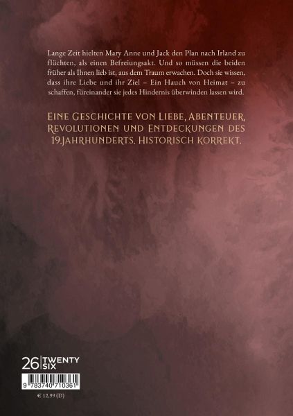 In Band zwei von Kiana Maartens Irlandsaga - Ein Hauch von Heimat - sind Mary Anne und Jack in der grausamen Realität Irlands angekommen: ein Land, das von Hunger, Revolte und der englischen Besatzung gezeichnet ist. Lange Zeit hielten Mary Anne und Jack den Plan, nach Irland zu flüchten, für einen Befreiungsakt. Doch im Land ihrer Vorfahren stellt sich Lord McDonough, Jacks verhasster Großvater, gegen das junge Paar, ihre Liebe und die Aussicht auf einen Adelstitel. Und so müssen die beiden früher, als ihnen lieb ist, aus dem Traum erwachen. Doch sie wissen, dass ihre Liebe und ihr Ziel - Ein Hauch von Heimat - zu schaffen, sie jedes Hindernis überwinden lassen wird. Eine Geschichte über Liebe, Abenteuer, Revolutionen, den Aufstand der Iren und die Entdeckung des 19. Jahrhunderts. Historisch korrekt.