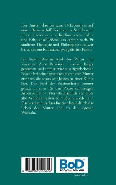 gerade gelegen und plötzlich reißen wieder alte Wunden auf und seine Erinnerungen an seine schwere…mehrPastor Arno Breslauer hat schon lange seine Vergangenheit hinter sich gelassen,bis zu dem Tag, als ein Brief aus dem Landeskrankenhaus für Psychiatrie bei ihm eintrifft mit der Bitte, dass er seine Mutter wieder einmal besuchen möchte. Gestresst von seiner Arbeit kommt ihm diese Nachricht nicht gerade gelegen und plötzlich reißen wieder alte Wunden auf und seine Erinnerungen an seine schwere Kindheit kommen wieder hoch. Doch er weiß, dass er sich diesen stellen muss und ein Besuch bei seiner psychisch kranken Mutter deren Vormund er schon seit vielen Jahren ist, ist somit unausweichlich.