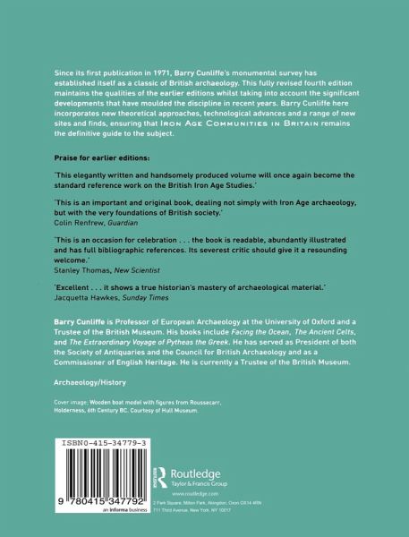 Since its first publication in 1971, Barry Cunliffe's monumental survey has established itself as a classic of British archaeology. This fully revised fourth edition maintains the qualities of the earlier editions whilst taking into account the significant developments that have moulded the discipline in recent years. Barry Cunliffe here incorporates new theoretical approaches, technological advances and a range of new sites and finds, ensuring that Iron Age Communities in Britain remains the definitive guide to the subject. Praise for earlier editions: 'This elegantly written and handsomely produced volume will once again become the standard reference work on the British Iron Age Studies.' This is an important and original book, dealing not simply with Iron Age archaeology, but with the very foundations of British society.' Colin Renfrew, Guardian This is an occasion for celebration...the book is readable, abundantly illustrated and has full bibliographic references. Its severest critic should give it a resounding welcome. Stanley Thomas, New Scientist 'Excellent - it shows a true historian's mastery of archaeological material.' Jaquetta Hawkes, Sunday Times
