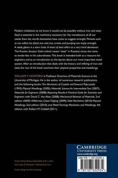 This book is intended both as a resource for engineers and as an introduction to the layman about our most important metal system. After an introduction that deals with the history and refining of iron and steel, the rest of the book examines their physical properties and metallurgy. To elaborate on the importance of iron and steel, we can refer to the fact that modern civilization as we know it would not be possible without it. Steel is essential in the machinery necessary for manufacturing that meets our needs. Even the words themselves have come to suggest strength. Phrases such as 'iron willed', 'iron fisted', 'iron clad', 'iron curtain' and 'pumping iron' imply strength. A 'steely glance' is a stern look. 'A heart of steel' refers to a very hard demeanor. The Russian dictator, Stalin (which means steel in Russian), chose the name to invoke fear in those under him.