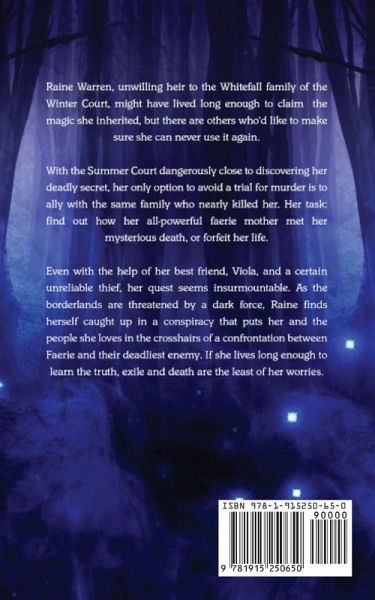 Raine Warren, unwilling heir to the Whitefall family of the Winter Court, might have lived long enough to claim the magic she inherited, but there are others who'd like to make sure she can never use it again. With the Summer Court dangerously close to discovering her deadly secret, her only option to avoid a trial for murder is to ally with the same family who nearly killed her. Her task: find out how her all-powerful faerie mother met her mysterious death, or forfeit her life. Even with the help of her best friend, Viola, and a certain unreliable thief, her quest seems insurmountable. As the borderlands are threatened by a dark force, Raine finds herself caught up in a conspiracy that puts her and the people she loves in the centre of a confrontation between Faerie and their deadliest enemy. If she lives long enough to learn the truth, exile and death are the least of her worries.