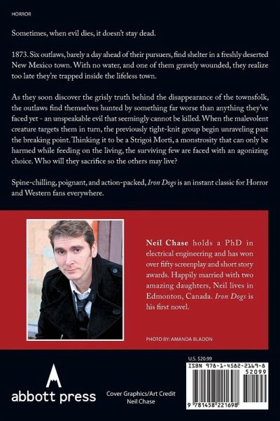 Sometimes, when evil dies, it doesnt stay dead. Six outlaws, barely a day ahead of their pursuers, find shelter in a freshly deserted New Mexico town. With no water, and one of them gravely wounded, they realize too late theyre trapped inside the lifeless town. As they soon discover the grisly truth behind the disappearance of the townsfolk, the outlaws find themselves hunted by something far worse than anything theyve faced yet - an unspeakable evil that seemingly cannot be killed. When the malevolent creature targets them in turn, the previously tight-knit group begin unraveling past the breaking point. Thinking it to be a Strigoi Morti, a monstrosity that can only be harmed while feeding on the living, the surviving few are faced with an agonizing choice. Who will they sacrifice so the others may live? Spine-chilling, poignant, and action-packed, Iron Dogs is an instant classic for Horror and Western fans everywhere.