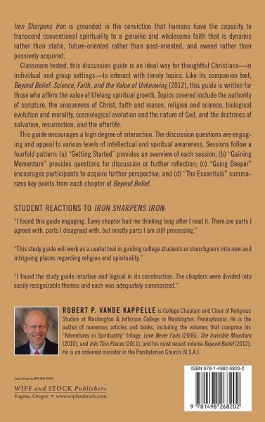 Iron Sharpens Iron is grounded in the conviction that humans have the capacity to transcend conventional spirituality to a genuine and wholesome faith that is dynamic rather than static, future-oriented rather than past-oriented, and owned rather than passively acquired. Classroom tested, this discussion guide is an ideal way for thoughtful Christians--in individual and group settings--to interact with timely topics. Like its companion text, Beyond Belief: Science, Faith, and the Value of Unknowing (2012), this guide is written for those who affirm the value of lifelong spiritual growth. Topics covered include the authority of scripture, the uniqueness of Christ, faith and reason, religion and science, biological evolution and morality, cosmological evolution and the nature of God, and the doctrines of salvation, resurrection, and the afterlife. This guide encourages a high degree of interaction. The discussion questions are engaging and appeal to various levels of intellectual and spiritual awareness. Sessions follow a fourfold pattern: (a) ""Getting Started"" provides an overview of each session; (b) ""Gaining Momentum"" provides questions for discussion or further reflection; (c) ""Going Deeper"" encourages participants to acquire further perspective; and (d) ""The Essentials"" summarizes key points from each chapter of Beyond Belief.