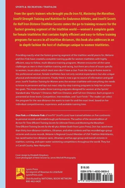 Providing exactly what the fastest growing segment of the triathlon world yearns for, Melanie and Don Fink have created a complete training guide for women triathletes with highly efficient, easy-to-follow, multi-distance training programs. Women encounter all the same challenges as men in their triathlon training and racing, but there are a host of issues unique to them, issues about which most men don’t have a clue. From the stay-at-home mom to the professional woman, female triathletes face societal expectations, and unique physical and emotional concerns. Until now, there has been never been a go-to source of information and guidance. IronFit Triathlon Training for Women arms the woman triathlete with everything she needs to know to persevere and lays out exact step-by-step training programs to help her to achieve her goals. This book includes three training programs designed for women at the Sprint/Standard (a/k/a "Olympic") Distance, Half Iron-Distance, and Full Iron-Distance. Each program is presented at three levels: Competitive, Intermediate, and "Just-Finish." The reader can select the program for the race distance she wants to train for and the exact level, based on her individual competitiveness, experience, and available training time.