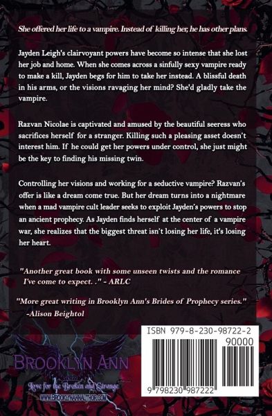 She offered her life to a vampire. Instead of killing her, he has other plans. Jayden Leigh's clairvoyant powers have become so intense that she lost her job and home. When she comes across a sinfully handsome vampire ready to make a kill. Jayden begs for him to take her instead. A blissful death in his arms, or the visions ravaging her mind? She'd gladly take the vampire. Razvan Nicolae is captivated and amused by the beautiful seeress who sacrifices herself for a stranger. Killing such a pleasing asset doesn't interest him. If he could get her powers under control, she just might be the key…mehr