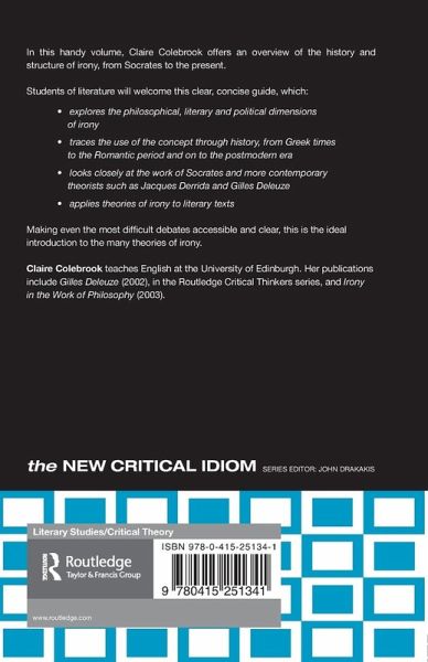 A clear, concise guide to the history and structure of irony from Socrates to the Derrida and Deleuze. Explores the philosophical, literary and political dimensions of irony.