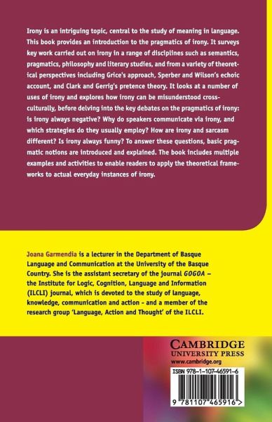 Ideal for advanced students and individual researchers in semantics and pragmatics, as well as related fields such as philosophy. It provides a non-specialized audience with the understanding of what irony is and its numerous manifestations. To specialized readers, its analysis of irony offers a deeper understanding and clarification of this form of human communication.