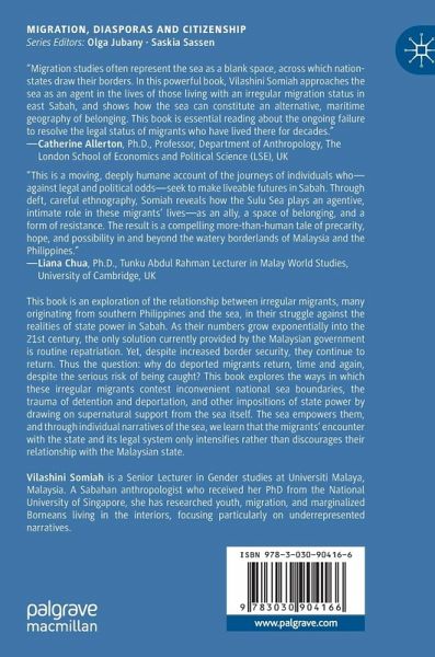 "Irregular Migrants and the Sea at the Borders of Sabah, Malaysia: Pelagic Alliance is a compelling volume from start to finish. ... By bringing to the fore the powerful and evocative images of her informants, Somiah offers valuable insights into the cry of migrants to belong amid the heavy culture of surveillance ... . Her focus on weaving the unique experiences of her informants into the narrative deserves much credit. ... this book is a delight for the anthropologist reader." (Trixie M Tangit, Southeast Asian Studies, Vol. 11 (3), December, 2022)