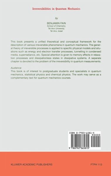 The problem of irreversibility is ubiquitous in physics and chemistry. The present book attempts to present a unified theoretical and conceptual framework for the description of various irreversible phenomena in quantum mechanics. In a sense, this book supplements conventional textbooks on quantum mechanics by including the theory of irreversibilities. However, the content and style of this book are more appropriate for a monograph than a textbook. We have tried to arrange the material so that, as far as possible, the reader need not continually refer elsewhere. The references to the literature make no pretense of completeness. The book is by no means a survey of present theoretical work. We have tried to highlight the basic principles and their results, while the attention has been mainly paid to the problems in which the author himself has been involved. The book as a whole is designed for the reader with knowledge of theoretical physics (especially quantum mechanics) at university level. This book is based on the courses of lectures given at the Chemistry Department of Tel-Aviv University.