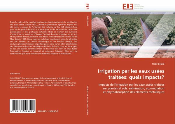 Dans le cadre de la stratégie tunisienne d'optimisation de la réutilisation des eaux usées traitées (EUT), plusieurs périmètres agricoles irrigués ont été créés. Le risque de l'irrigation des cultures par les EUT dépend d'une part, de la qualité des EUT et d'autre part, de la nature de la couverture pédologique et des pratiques culturales (type et rotation des cultures). L'objectif de ce travail est d'évaluer l'impact de cette irrigation sur les sols et les plantes dans le périmètre d'El Hajeb, réutilisant les EUT de la STEP de Sfax depuis 1989. Deux types de sols bien représentés dans le périmètre ont été étudiés: un calcisol isohumique et un fluvisol calcique. Des analyses physicochimiques et pédologiques ainsi qu'un bilan géochimique des éléments majeurs et métalliques (EM) ont été faits pour les deux types de sol. Les plantes échantillonnées sur les deux sites sont de deux types; fourragères (sorgho et luzerne) et pérennes (oliviers). Elles ont été caractérisées par leurs contenus en éléments majeurs et métalliques.