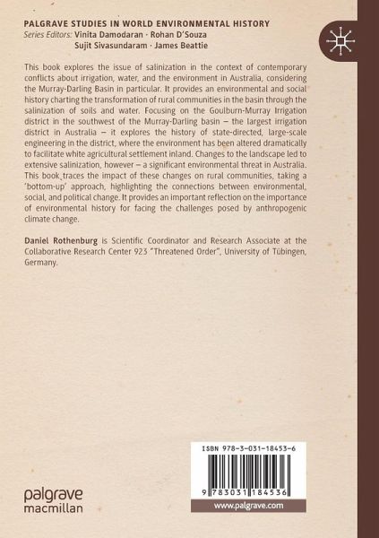 This book explores the issue of salinization in the context of contemporary conflicts about irrigation, water, and the environment in Australia, considering the Murray-Darling Basin in particular. It provides an environmental and social history charting the transformation of rural communities in the basin through the salinization of soils and water. Focusing on the Goulburn-Murray Irrigation district in the southwest of the Murray-Darling basin - the largest irrigation district in Australia - it explores the history of state-directed, large-scale engineering in the district, where the environment has been altered dramatically to facilitate white agricultural settlement inland. Changes to the landscape led to extensive salinization, however - a significant environmental threat in Australia. This book traces the impact of these changes on rural communities, taking a 'bottom-up' approach, highlighting the connections between environmental, social, and political change. It provides animportant reflection on the importance of environmental history for facing the challenges posed by anthropogenic climate change.