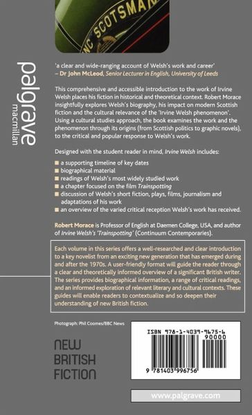 General Editors Preface.- Acknowledgments.- PART 1: INTRODUCTION Timeline.- Introduction: The Irvine Welsh Phenomenon.- PART 2: MAJOR WORKS Trainspotting: The First Day of the Irvine Welsh Festival.- Trainspotting: The Film.- The Acid House, Ecstasy and Filth.- Marabou Stork Nightmares.- Glue and Porno.- PART 3: CRITICISM AND CONTEXTS Other Writings.- Critical Reception.- Bibliography.