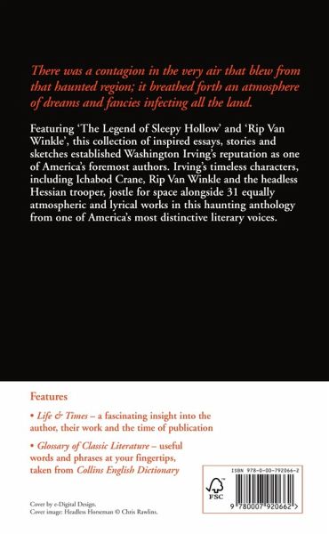 Featuring 'The Legend of Sleepy Hollow' and 'Rip Van Winkle', this collection of inspired essays, stories and sketches established Washington Irving's reputation as one of America's foremost authors. Irving's timeless characters, including Ichabod Crane, Rip Van Winkle and the headless Hessian trooper, jostle for space alongside 31 equally atmospheric and lyrical works in this haunting anthology from one of America's most distinctive literary voices.