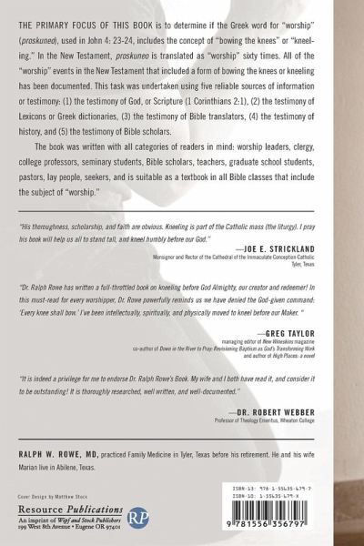 The primary focus of this book is to determine if the Greek word for ""worship"" (proskuneo), used in John 4: 23-24, includes the concept of ""bowing the knees"" or ""kneeling."" In the New Testament, proskuneo is translated as ""worship"" sixty times. All of the ""worship"" events in the New Testament that included a form of bowing the knees or kneeling has been documented. This task was undertaken using five reliable sources of information or testimony: (1) the testimony of God, or Scripture (1Corinthians 2:1), (2) the testimony of Lexicons or Greek dictionaries, (3) the testimony of Bible translators, (4) the testimony of history, and (5) the testimony of Bible scholars. The book was written with all categories of readers in mind: worship leaders, clergy, college professors, Seminary students, Bible scholars, teachers, graduate school students, Pastors, lay people, seekers, and is suitable as a textbook in all Bible classes that include the subject of ""worship"".