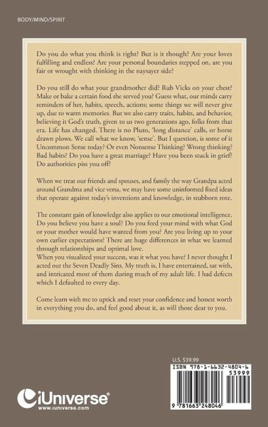 Welcome to a way to break your emotional pain. Learn you can live in happiness with reformed skills and approaches. You will relate to my personal story in so many ways, fraught with cope, unmanageability, grief, guilt and frustration. Through philosophical recounting of how we became our personalities, we begin to uptick our attitude and conversation. We will crystalize your honesty and spirituality, honing your assets with strength, courage, and hope. Light up your brain and achieve higher understanding and communication. Break that habit, improve love, recover from brokenness.