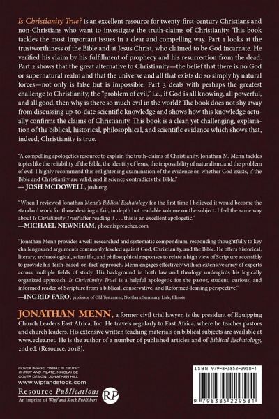 Is Christianity True? is an excellent resource for twenty-first-century Christians and non-Christians who want to investigate the truth-claims of Christianity. This book tackles the most important issues in a clear and compelling way. Part 1 looks at the trustworthiness of the Bible and at Jesus Christ, who claimed to be God incarnate. He verified his claim by his fulfillment of prophecy and his resurrection from the dead. Part 2 shows that the great alternative to Christianity--the belief that there is no God or supernatural realm and that the universe and all that exists do so simply by natural forces--not only is false but is impossible. Part 3 deals with perhaps the greatest challenge to Christianity, the ""problem of evil,"" i.e., if God is all knowing, all powerful, and all good, then why is there so much evil in the world? The book does not shy away from discussing up-to-date scientific knowledge and shows how this knowledge actually confirms the claims of Christianity. This book is a clear, yet challenging, explanation of the biblical, historical, philosophical, and scientific evidence which shows that, indeed, Christianity is true.
