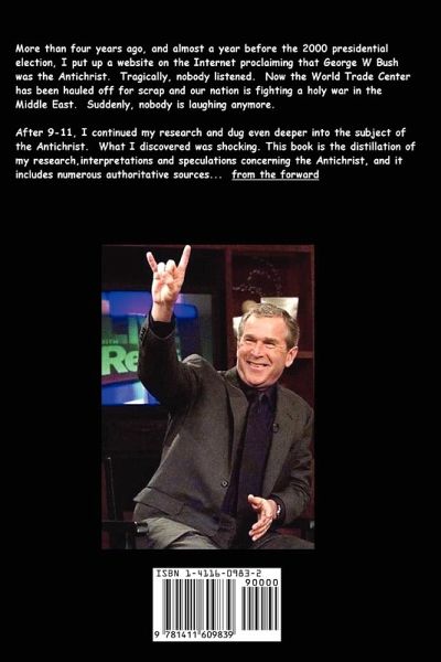 More than four years ago, and almost a year before the 2000 presidential election, I put up a website proposing that George W Bush was the Antichrist. Tragically, nobody listened. Now the World Trade Center has been hauled off for scrap and our nation is fighting a holy war in the Middle East. The question is: how can we achieve victory over the ultimate evil in the world (terrorism), without recognizing the kind of deception that is the hallmark of the Antichrist? Unlike Bush, I don't claim to be on a divinely appointed mission. And also unlike him, I present the well-documented facts.