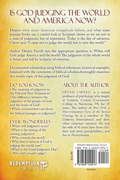 Is God judging America or the world at present? According to a well-documented and researched examination of what the Bible actually says about judgment, no. Despite what many American evangelicals believe, and what some popular books say, a careful look at Scripture shows we are not in a time of judgment, but of repentance. Thorough scholarship uses biblical references, historical examples, and the comments of biblical scholars to examine the timely topic of the judgment of God. Learn the difference between judgment in the Old Testament and the New Testament, when judgment will occur, and who will do the judging.