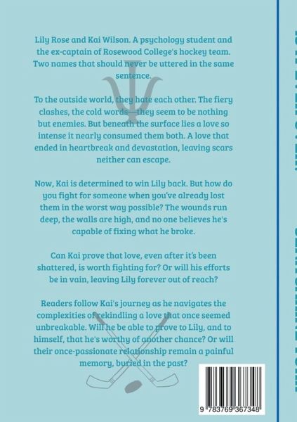 The story follows Lily Rose, a psychology student, and Kai Wilson, the ex-captain of Rosewood College's hockey team. To outsiders, they appear to hate each other, constantly clashing. However, beneath the surface, their past love was so intense that it left deep emotional scars when it ended. Now, Kai is determined to win Lily back, but the wounds from their breakup run deep, and no one believes he can fix what he broke. The question is: can love survive even after being shattered, or is Kais fight for redemption doomed to fail? The novel explores Kais journey as he tries to prove he is worthy of a second chance. Will he succeed, or will their passionate past remain just a painful memory?