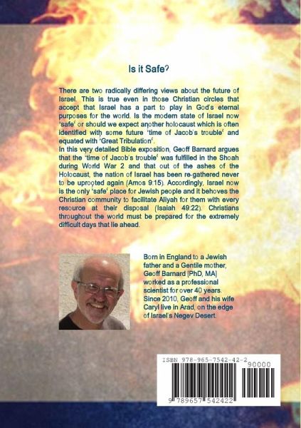 There are two radically differing views about the future of Israel. This is true even in those Christian circles that accept that Israel has a part to play in God's eternal purposes for the world. Is the modern state of Israel now "safe" or should we expect another holocaust which is often identified with some future "time of Jacob's trouble" and equated with "Great Tribulation". In this very detailed Bible exposition, Geoff Barnard argues that the "time of Jacob's trouble" was fulfilled in the Shoah during World War 2 and that out of the ashes of the Holocaust, the nation of Israel has been re-gathered never to be uprooted again (Amos 9:15). Accordingly, Israel now is the only "safe" place for Jewish people and it behoves the Christian community to facilitate Aliyah for them with every resource at their disposal (Isaiah 49:22). Christians throughout the world must be prepared for the extremely difficult days that lie ahead.