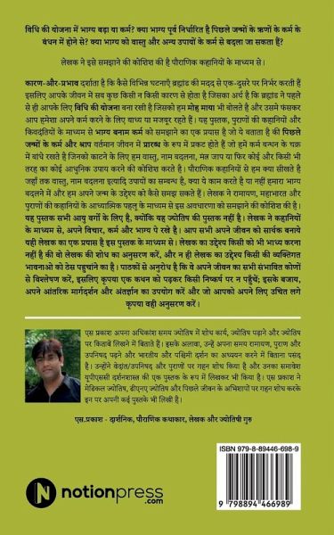 In the scheme of law, is fate bigger or karma? Is fate predetermined by the bondage of karma of debts of past lives? Can fate be changed by karma of Vastu and other remedies? The author has tried to explain this through mythological stories. Cause-and-effect shows how different events depend on each other with the help of the universe so everything in your life happens for some reason which means that the universe has already planned a law for you which we also call Moh Maya and by getting stuck in it, you are always bound or compelled to do your karma. This book is an attempt to explain fate vs karma through stories and legends of the Puranas which tells that the karma and curses of past lives manifest in the present life in the form of destiny which keeps us bound in the cycle of karmic bondage and to break it we try to do any modern remedy like Vastu, changing name, chanting mantras or any other kind. What do we learn from mythological stories as far as remedies like Vastu, name changing etc. are concerned, whether they work or not in changing our destiny and how can we understand the purpose of our birth. The author has tried to explain this concept through the spiritual aspect of the stories of Ramayana, Mahabharata and Puranas. This book is for all age groups, as it is not an astrology book. Through the stories, the author has put forth his thoughts on karma and destiny. The author's effort through this book is to make all of you make your lives meaningful.