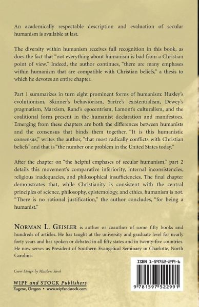 An academically respectable description and evaluation of secular humanism is available at last. The diversity within humanism receives full recognition in this book, as does the fact that not everything about humanism is bad from a Christian point of view. Indeed, the author continues, there are many emphases within humanism that are compatible with Christian beliefs, a thesis to which he devotes an entire chapter. Part 1 summarizes in turn eight prominent forms of humanism: Huxley's evolutionism, Skinner's behaviorism, Sartre's existentialism, Dewey's pragmatism, Marxism, Rand's egocentrism, Lamont's culturalism, and the coalitional form present in the humanist declaration and manifestoes. Emerging from these chapters are both the differences between humanists and the consensus that binds them together. It is this humanistic consensus, writes the author, that most radically conflicts with Christian beliefs and that is the number one problem in the United States today. After the chapter on the helpful emphases of secular humanism, part 2 details this movement's comparative inferiority, internal inconsistencies, religious inadequacies, and philosophical insufficiencies. The final chapter demonstrates that, while Christianity is consistent with the central principles of science, philosophy, epistemology, and ethics, humanism is not. There is no rational justification, the author concludes, for being a humanist.