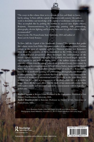 "Is Paris Still the Capital of the Nineteenth Century?" The question that guides this volume stems from Walter Benjamin's studies of nineteenth-century Parisian culture as the apex of capitalist aesthetics. Thirteen scholars test Benjamin's ideas about the centrality of Paris, formulated in the 1930s, from a variety of methodological perspectives. Many investigate the underpinnings of the French capital's reputation and mythic force, which was based largely upon the city's capacity to put itself on display. Some of the authors reassess the famed centrality of Paris from the vantage point of our globalized twenty-first century by acknowledging its entanglements with South Africa, Turkey, Japan, and the United States. The volume equally studies a broader range of media than Benjamin did himself: from modernist painting and printmaking, photography, and illustration to urban planning. The essays conclude that Paris did in many ways function as the epicenter of modernity's international reach, especially in the years from 1850 to 1900, but did so only as a consequence of the idiosyncratic force of its mythic image. Above all, the essays affirm that the study of late nineteenth-century Paris still requires nimble and innovative approaches commensurate with its legend and global aura.